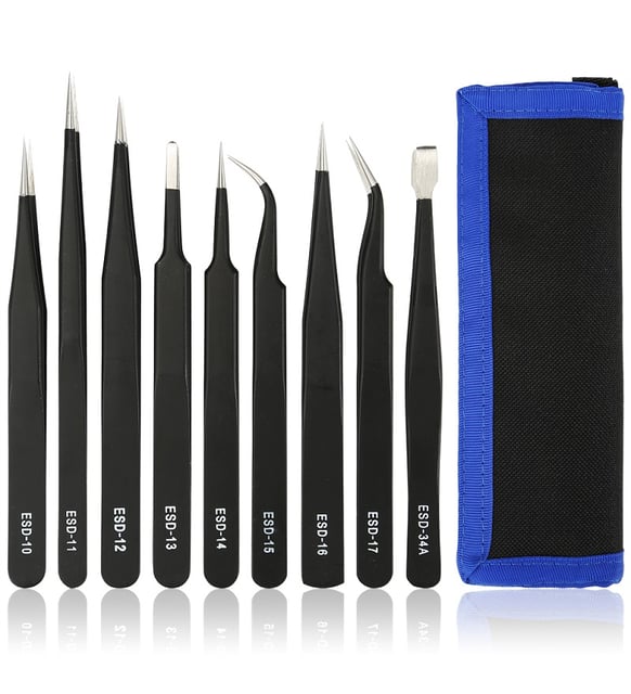 ESD Profesyonel Cımbız Seti 9 Adet, kapsamlı ve etkili bir tamir aracı olarak, çeşitli elektronik cihazların onarım ve bakımında ihtiyaç duyduğunuz tüm özellikleri sunmaktadır. Kaliteli malzeme yapısı, ergonomik tasarımı ve çok yönlü kullanımı ile bu set, teknik becerilerinizi bir üst seviyeye taşıyacak. ESD cımbız seti ile tamir işlerinizi daha kolay ve daha güvenli hale getirin!