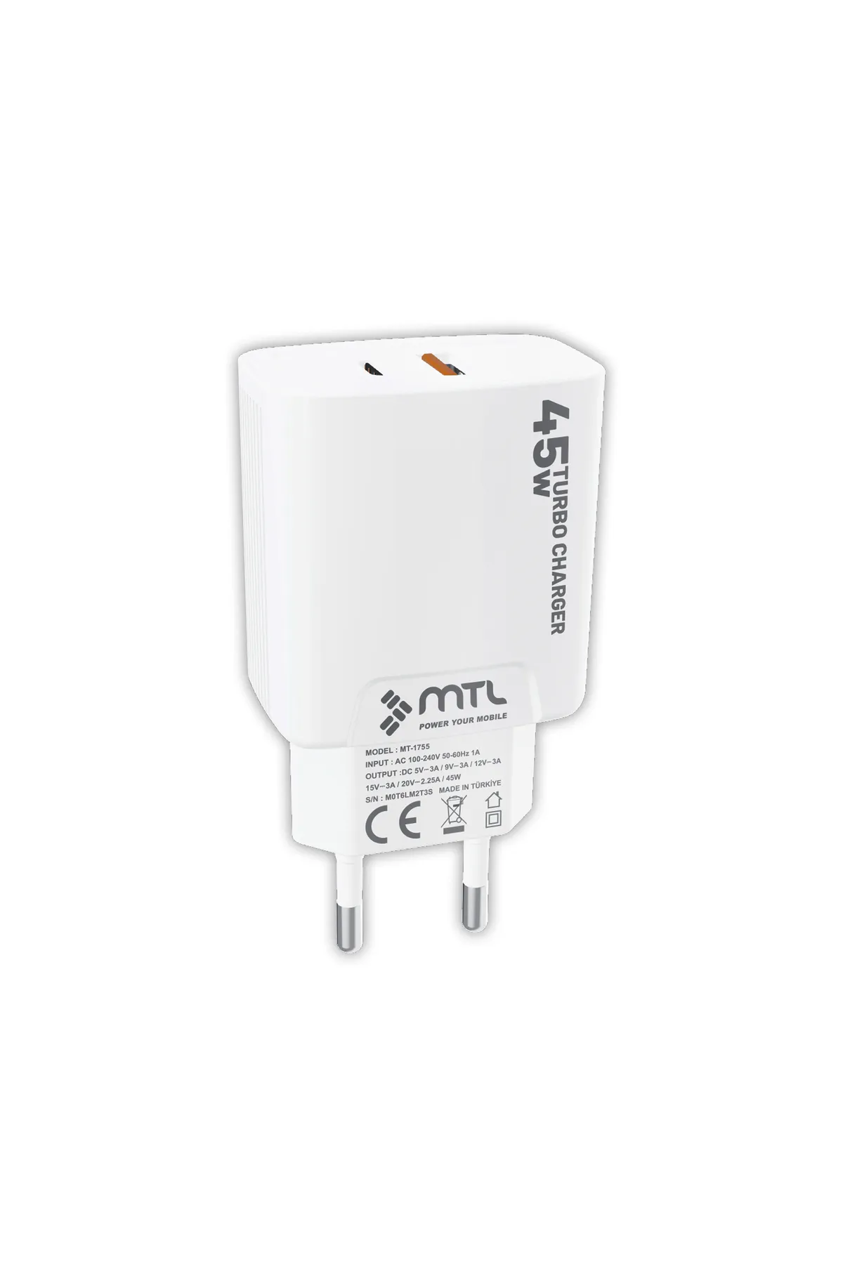 Günümüzün hızlı tempolu yaşamında, teknolojiyle entegre olmuş bir dünyanın parçası olmak, cihazlarımızın her an yanımızda olmasını gerektirir. MTL 45W Turbo Type-C ve USB Çift Girişli Şarj Adaptörü QC 4.0 MT1755, hızlı ve güvenilir bir şarj deneyimi sunarak bu ihtiyacı karşılamak üzere tasarlanmıştır.