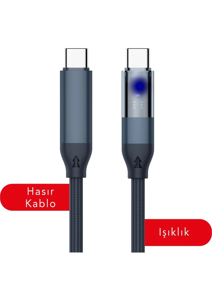 MTL Işıklı Type-C to Type-C PD Hasır Hızlı Şarj Ve Data Aktarım Kablosu 40 Watt 1 Metre MT2130