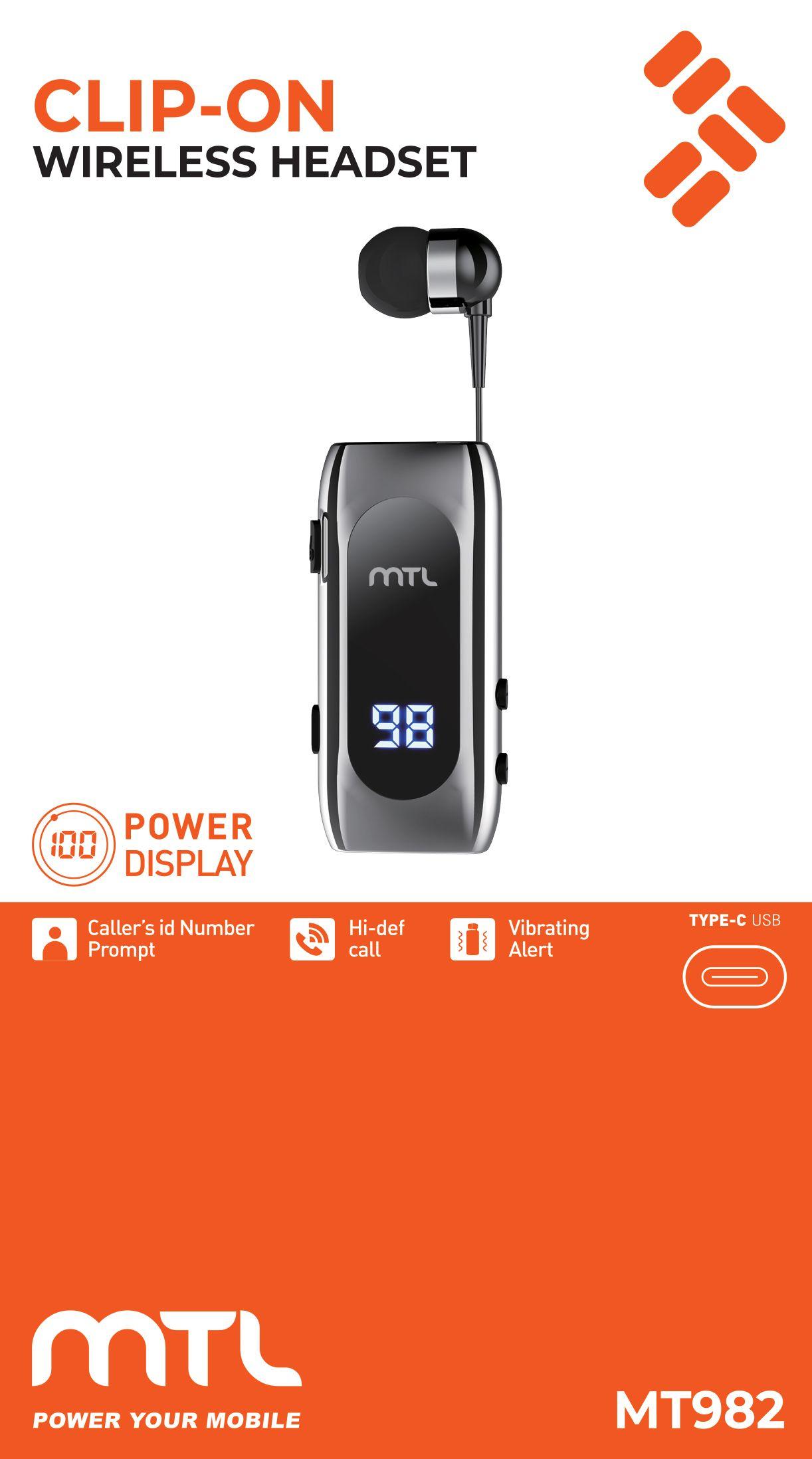 MTL MT982 Clip-On Wireless Kulaklıkile teknoloji ve konfor cebinizde! Şık tasarımı, dijital ekranı ve kullanışlı makaralı kablo sistemi sayesinde günlük hayatınızda büyük kolaylık sağlar.