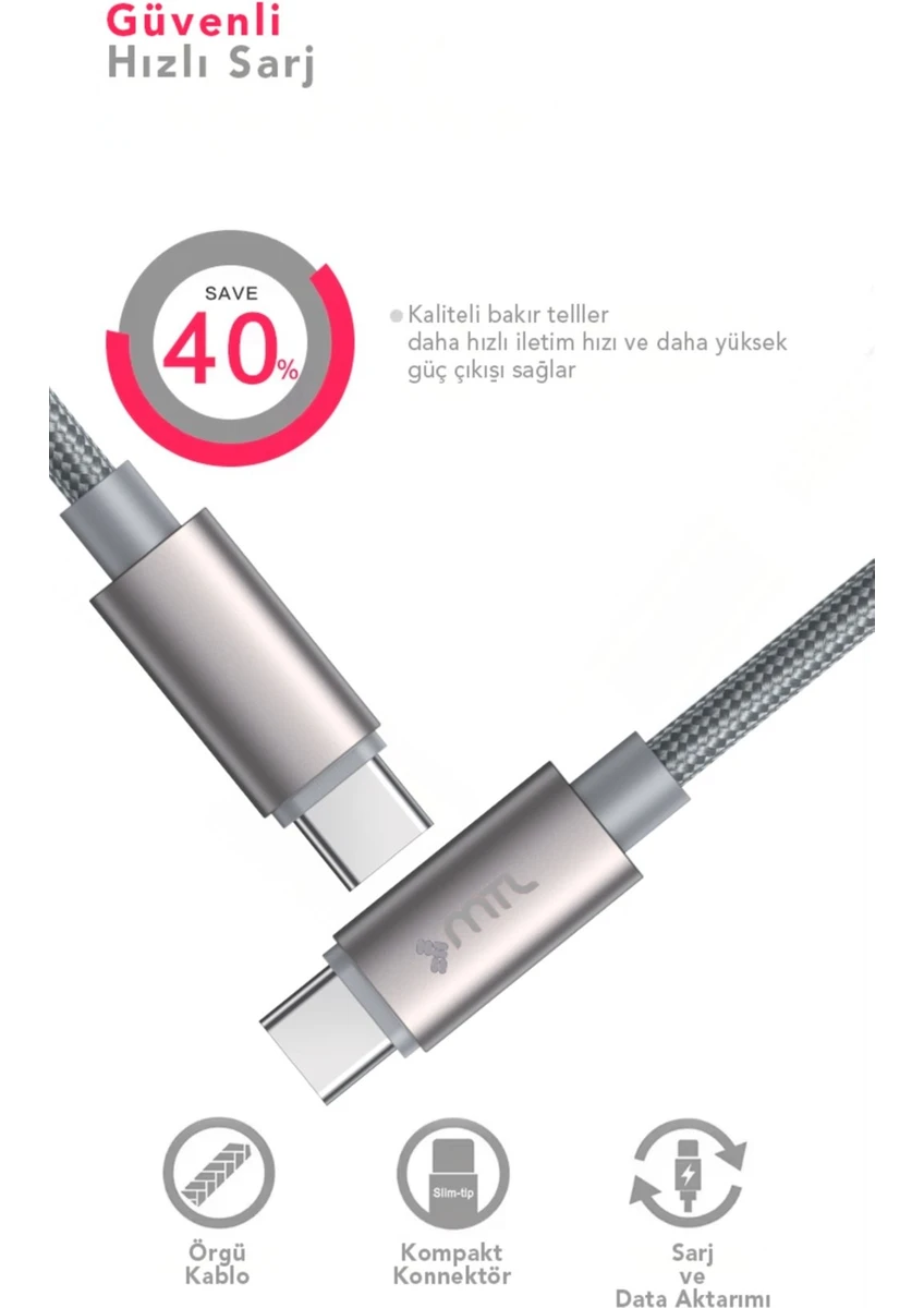 MTL Type-C to Type-C PD Hasır Hızlı Şarj Ve Data Aktarım Kablosu 60 Watt 1 Metre MT2119