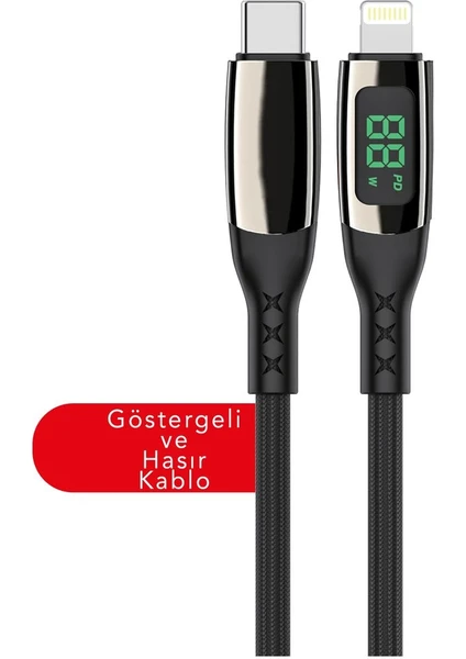 MTL Watt Göstergeli iPhone Lightning to Type-C PD Hasır Şarj ve Data Aktarım Kablosu 1 Metre 30W MT2216