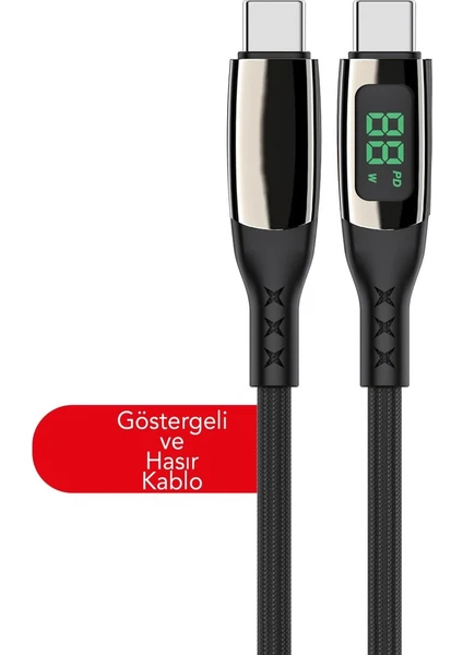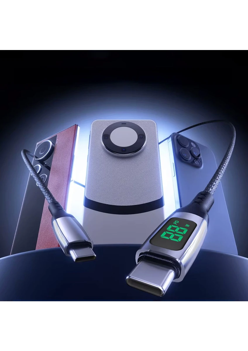 MTL Watt Göstergeli Type-C to Type-C PD Hasır Şarj ve Data Aktarım Kablosu 1 Metre 65W MT2215