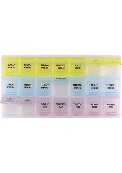 • 21 Göz: Farklı renklerde 21 ayrı bölme, her gün için ayrı bir alan sunarak haftalık planlamanızı kolaylaştırır.